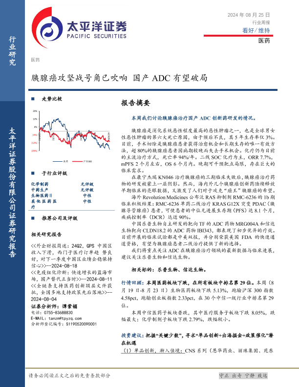 【太平洋证券】【20240825】医药行业周报:胰腺癌攻坚战号角已吹响 国产ADC有望破局-18页