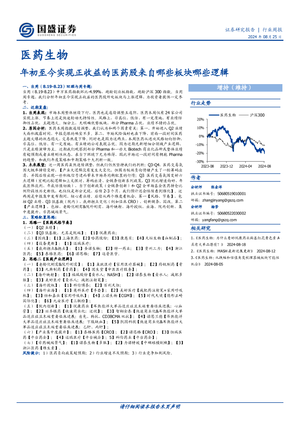 【国盛证券】【20240825】医药生物行业周报:年初至今实现正收益的医药股来自哪些板块哪些逻辑-35页