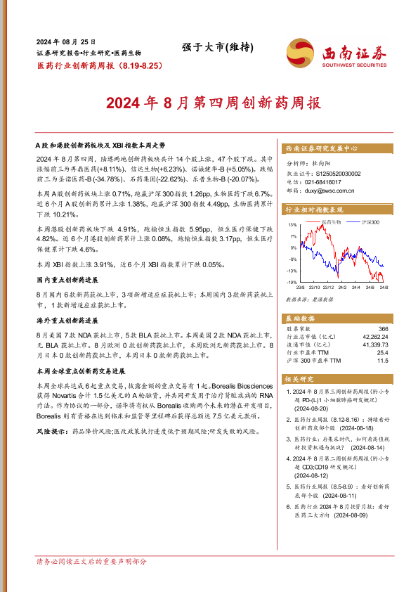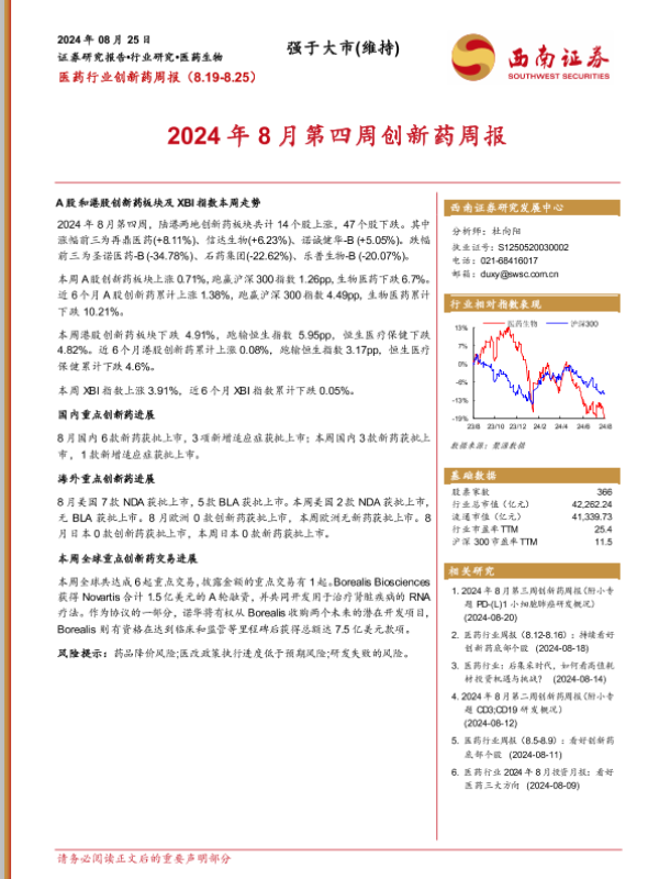 【西南证券】【20240825】2024年8月第四周创新药周报-17页