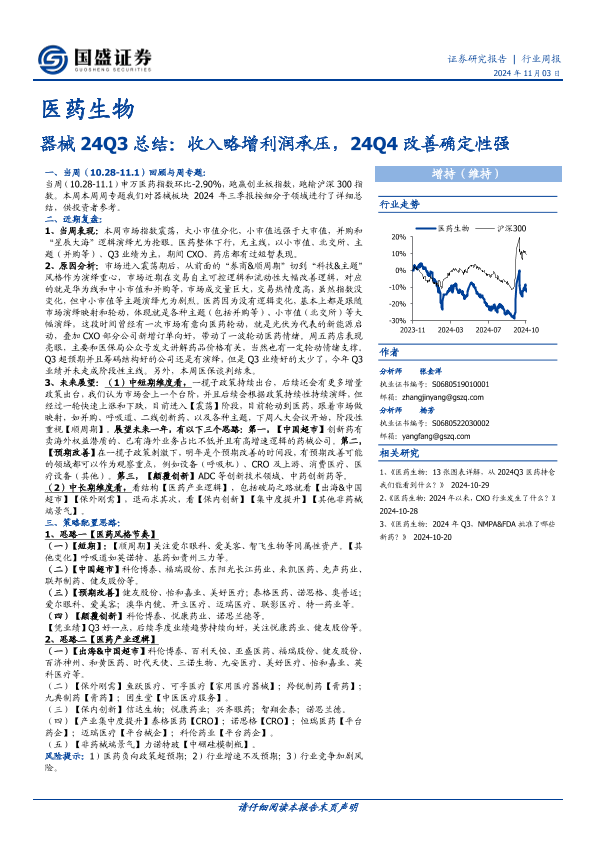 【国盛证券】【20241103】器械24Q3总结:收入略增利润承压,24Q4改善确定性强-47页