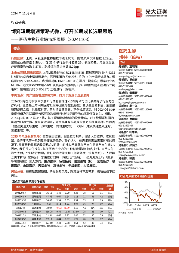 【光大证券】【20241104】医药生物行业跨市场周报:博弈短期增速策略式微,打开长期成长选股思路-18页