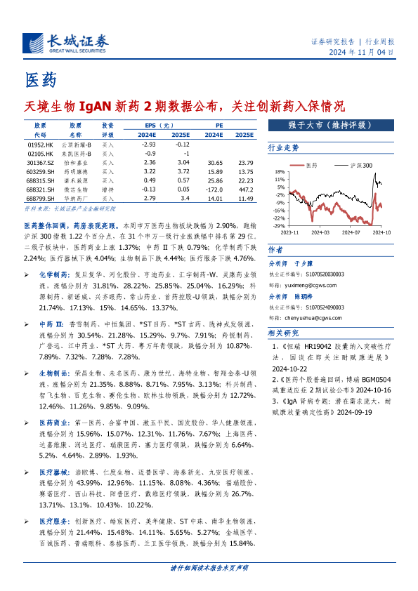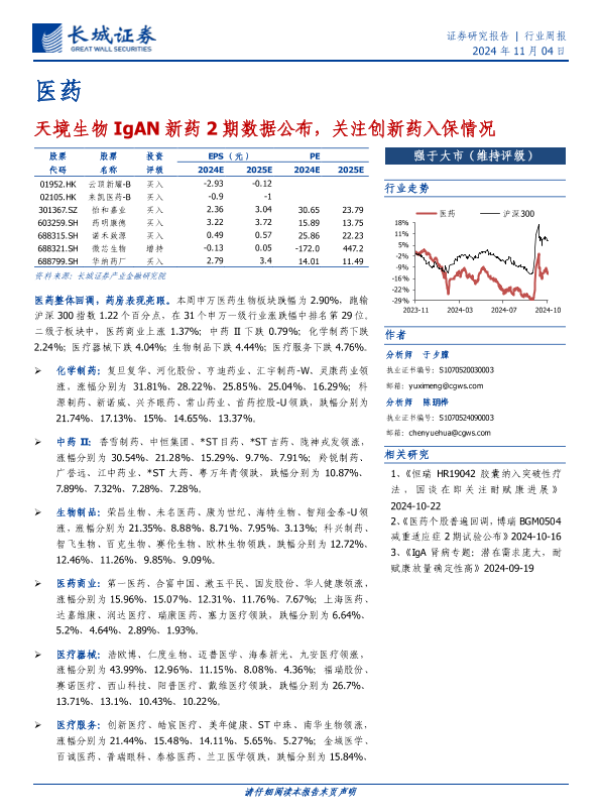 【长城证券】【20241104】医药行业周报:天境生物IgAN新药2期数据公布,关注创新药入保情况-16页