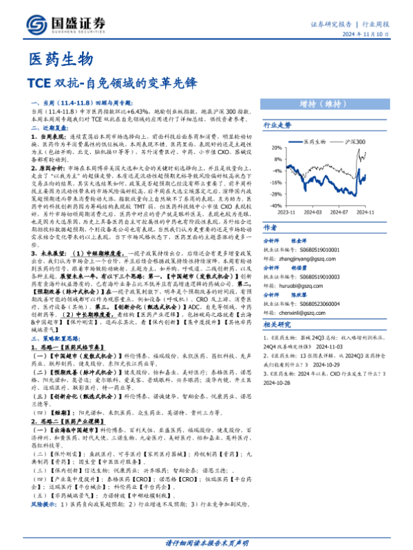 TCE双抗 医药生物 投资策略 自免领域 行业周报
