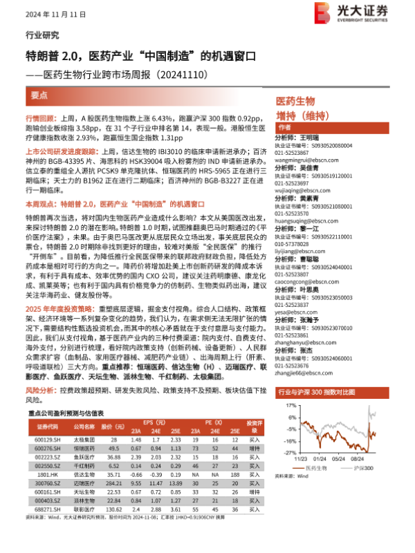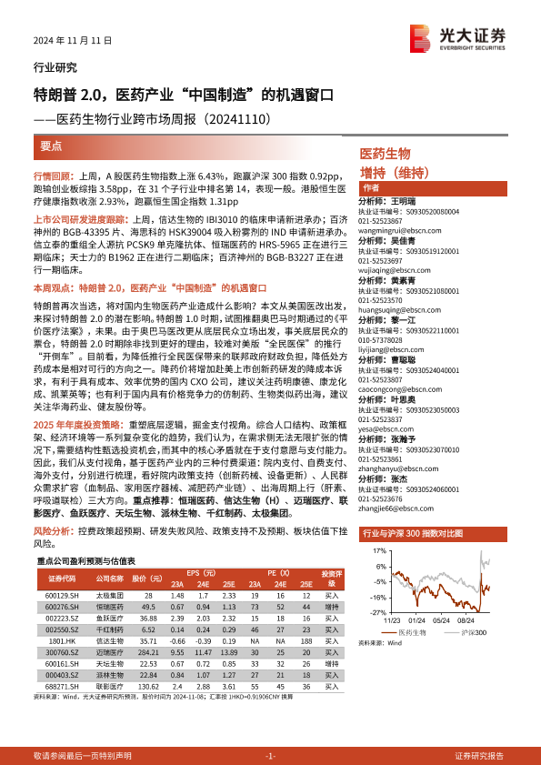 【光大证券】【20241111】医药生物行业跨市场周报:特朗普2.0,医药产业“中国制造”的机遇窗口-17页