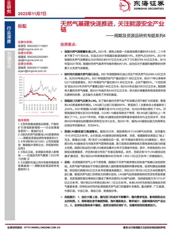 【东海证券】【20221107】天然气基建快速推进,关注能源安全产业链-16页