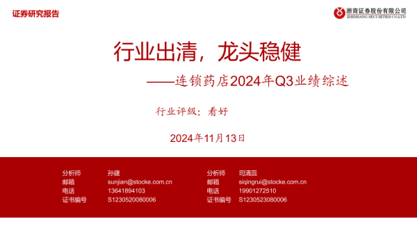 【浙商证券】【20241113】连锁药店2024年Q3业绩综述-22页