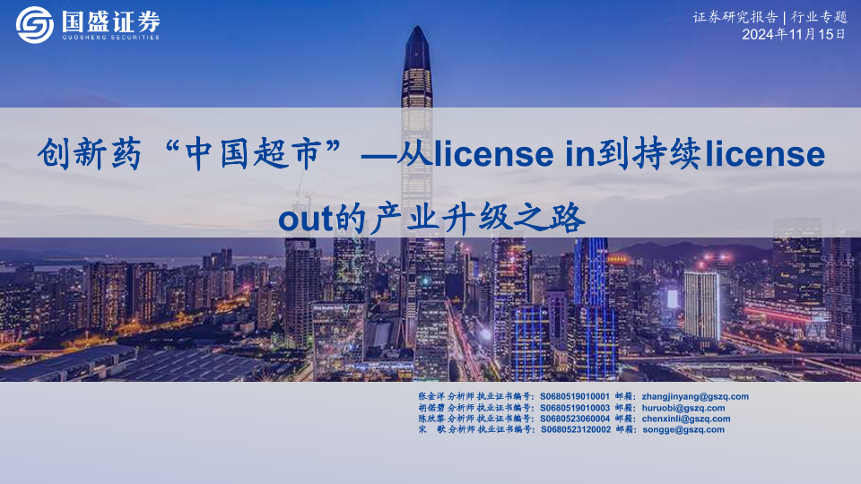 【国盛证券】【20241115】创新药“中国超市”:从license in到持续license out的产业升级之路-16页