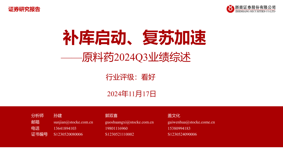 【浙商证券】【20241117】原料药2024Q3业绩综述:补库启动、复苏加速-22页