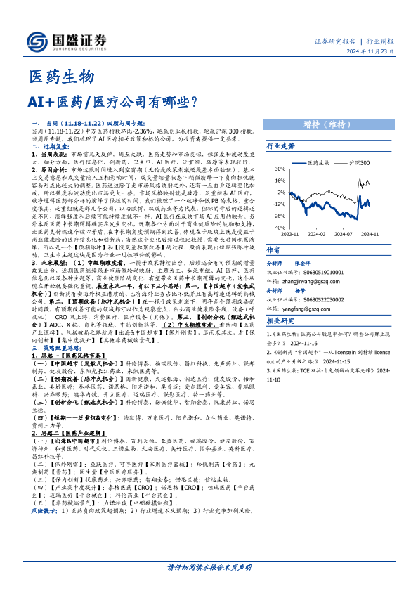 AI医疗 医药生物 投资策略 政策分析 行业周报