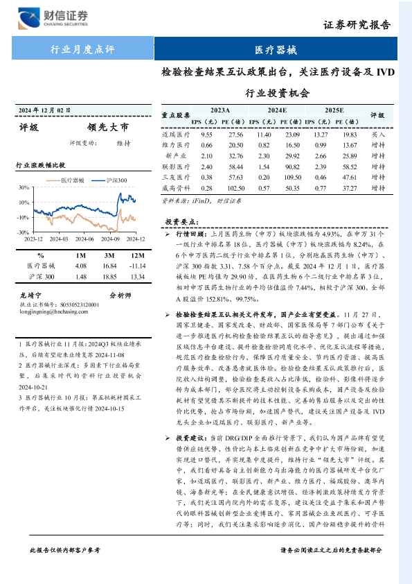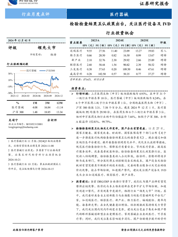【财信证券】【20241202】医疗器械行业月度点评:检验检查结果互认政策出台,关注医疗设备及IVD行业投资机会-12页