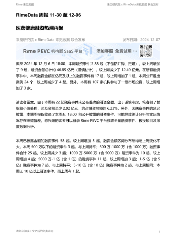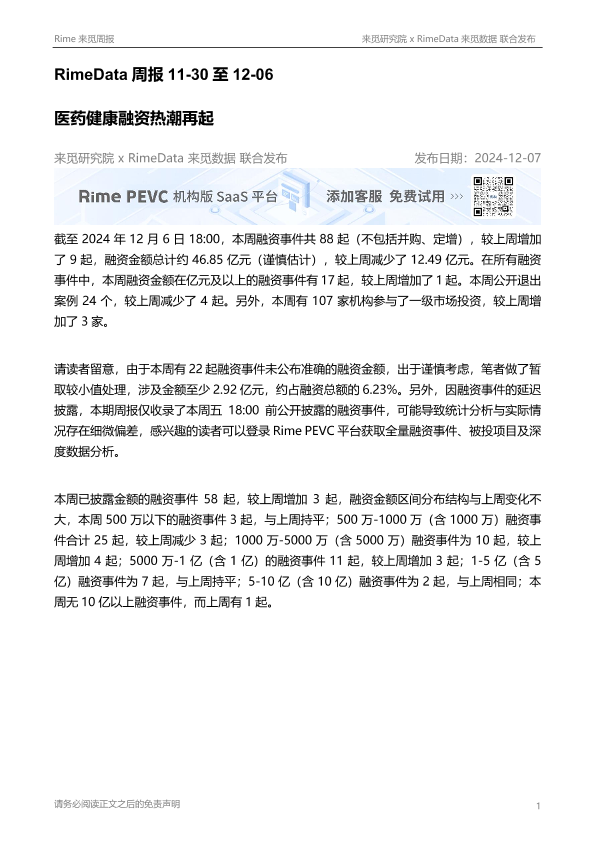 【来觅研究院 x RimeData来觅数据】【20241207】医药健康融资热潮再起-11页