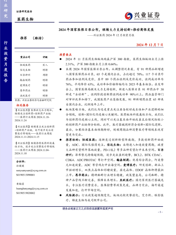 【兴业证券】【20241207】2024年国家医保目录公布,继续大力支持创新+推动商保发展-21页
