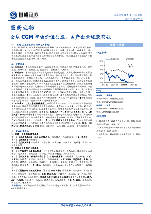 CGM市场 医药生物 国产企业 市场分析 行业周报