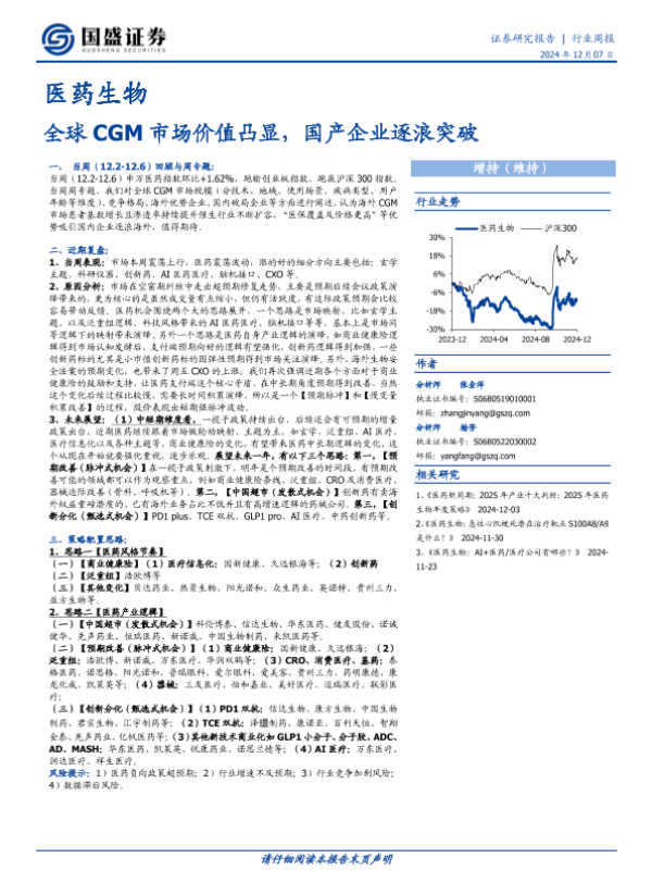 【国盛证券】【20241207】全球CGM市场价值凸显,国产企业逐浪突破-43页