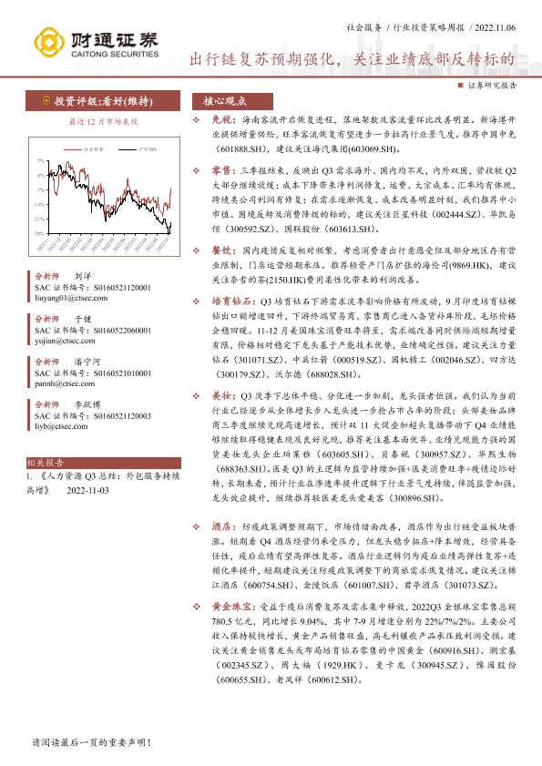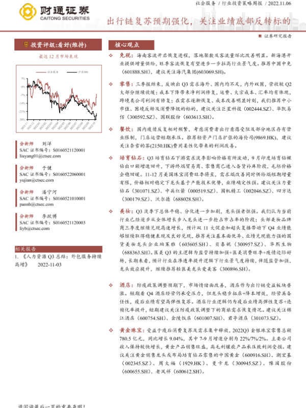 【财通证券】【20221106】社会服务行业投资策略周报:出行链复苏预期强化,关注业绩底部反转标的-24页