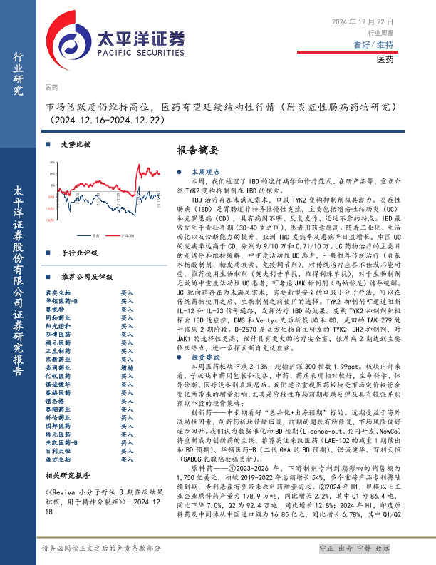 【太平洋证券】【20241222】市场活跃度仍维持高位,医药有望延续结构性行情-20页