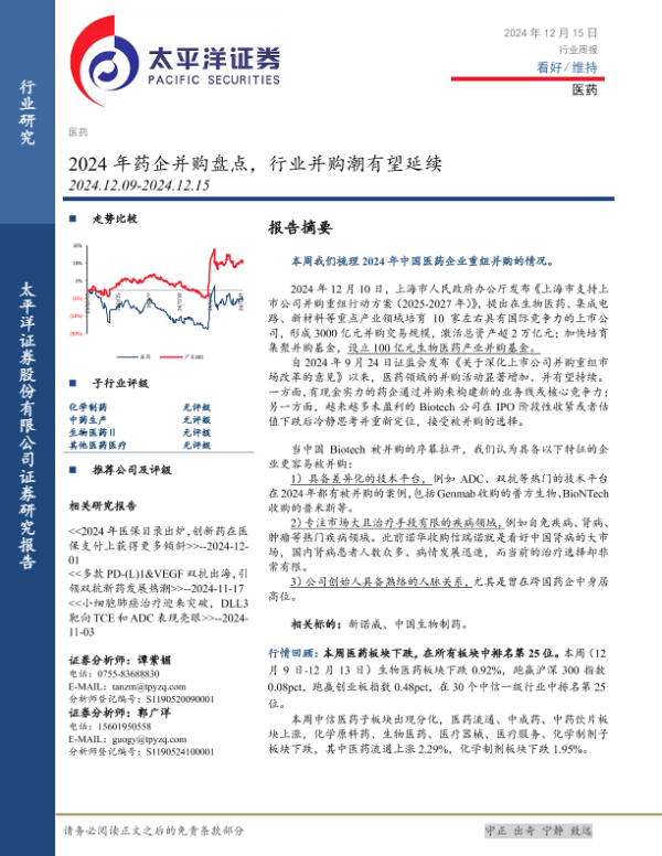 【太平洋证券】【20241215】2024年药企并购盘点,行业并购潮有望延续-16页