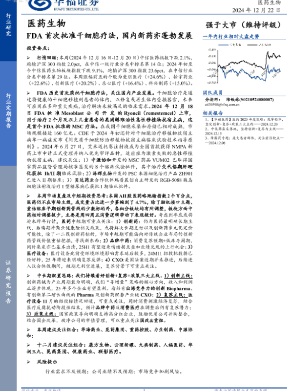 【华福证券】【20241222】医药生物:FDA首次批准干细胞疗法,国内新药亦蓬勃发展-19页