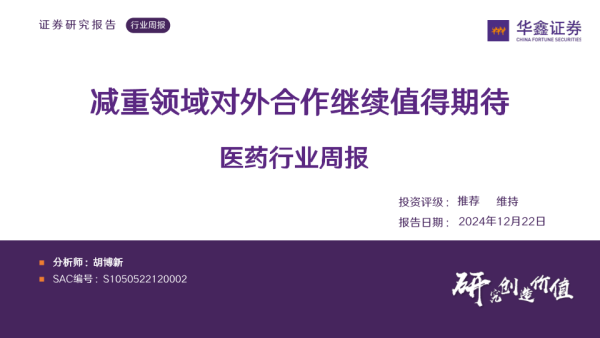 【华鑫证券】【20241222】医药行业周报:减重领域对外合作继续值得期待-32页
