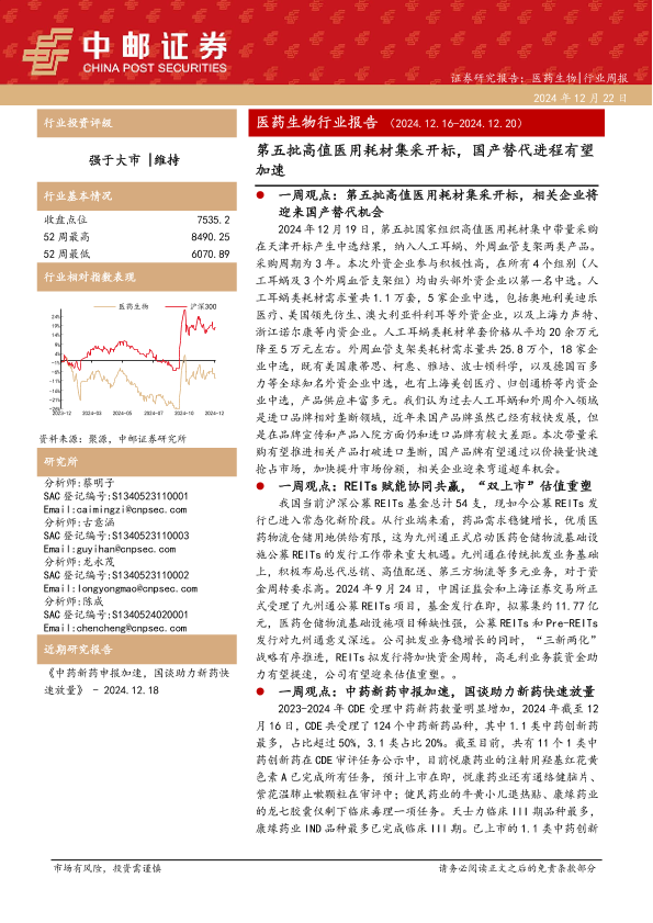 REITs REITS 医药生物 国产替代 集采