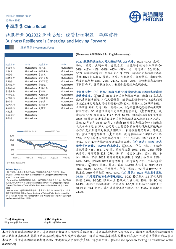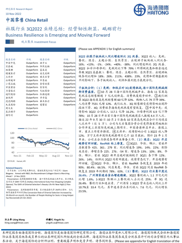 【海通国际】【20221110】社服行业3Q2022业绩总结:经营韧性渐显,砥砺前行-33页