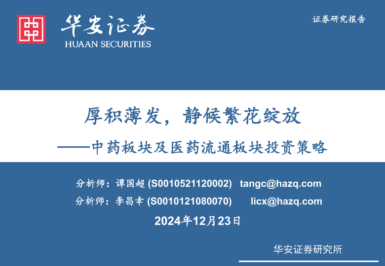 【华安证券】【20241223】中药板块及医药流通板块投资策略:厚积薄发,静候繁花绽放-45页