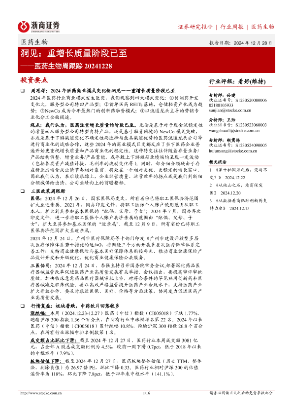 【浙商证券】【20241228】医药生物周跟踪:洞见:重增长质量阶段已至-16页