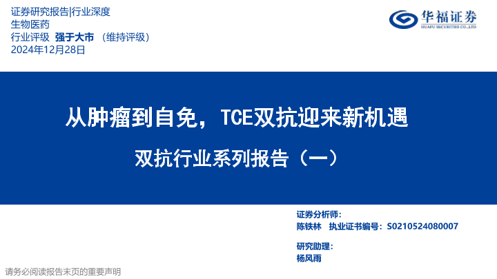 【华福证券】【20241228】从肿瘤到自免,TCE双抗迎来新机遇-41页
