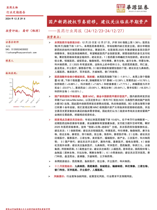 【华源证券】【20241229】国产新药授权节奏前移,建议关注临床早期资产-13页