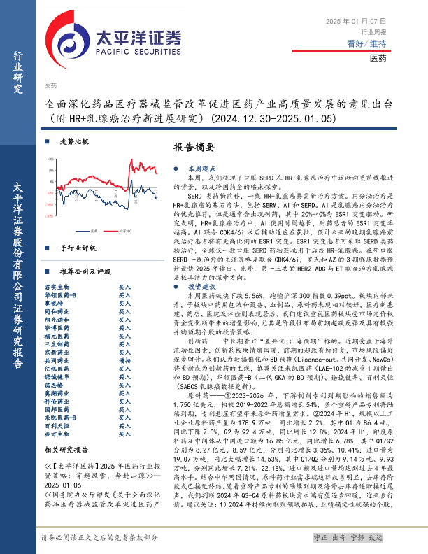 【太平洋证券】【20250107】全面深化药品医疗器械监管改革促进医药产业高质量发展的意见出台-20页