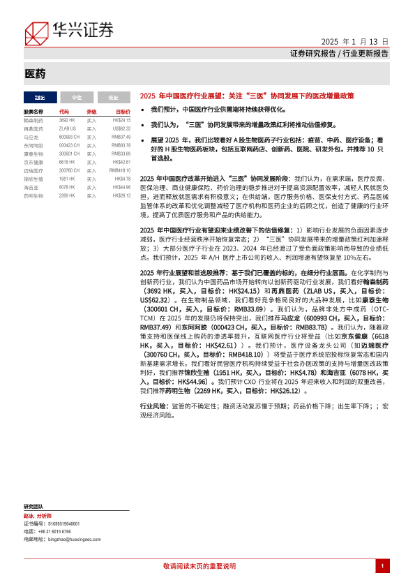 【华兴证券】【20250113】2025年中国医疗行业展望:关注“三医”协同发展下的医改增量政策-50页