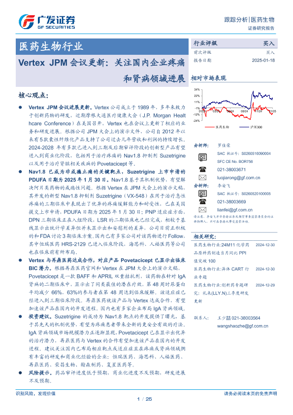 【广发证券】【20250118】Vertex JPM会议更新:关注国内企业疼痛和肾病领域进展-25页