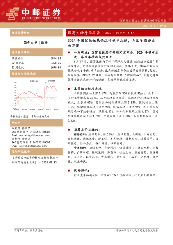 【中邮证券】【20250119】2024年国家医保基金运行稳中求进,各改革措施成效显著-15页