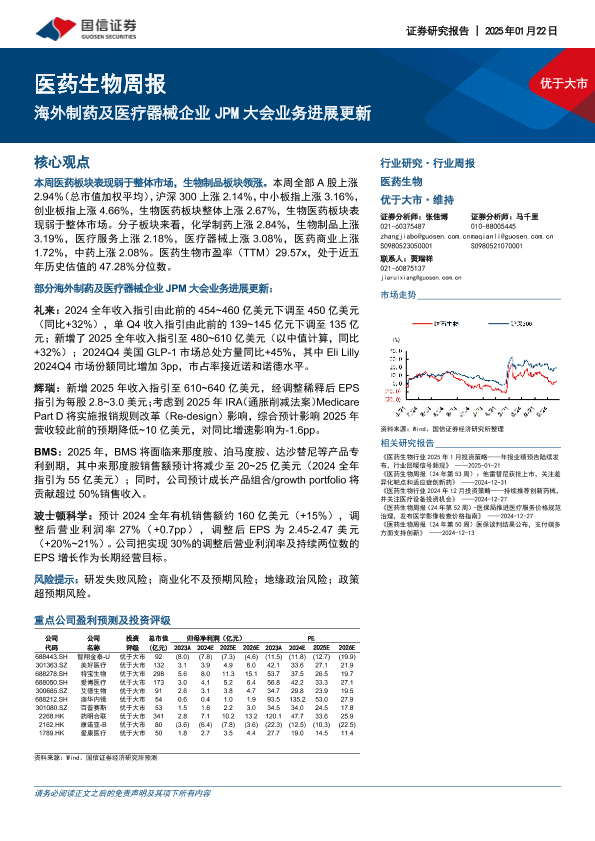 【国信证券】【20250122】医药生物周报:海外制药及医疗器械企业 JPM大会业务进展更新-20页