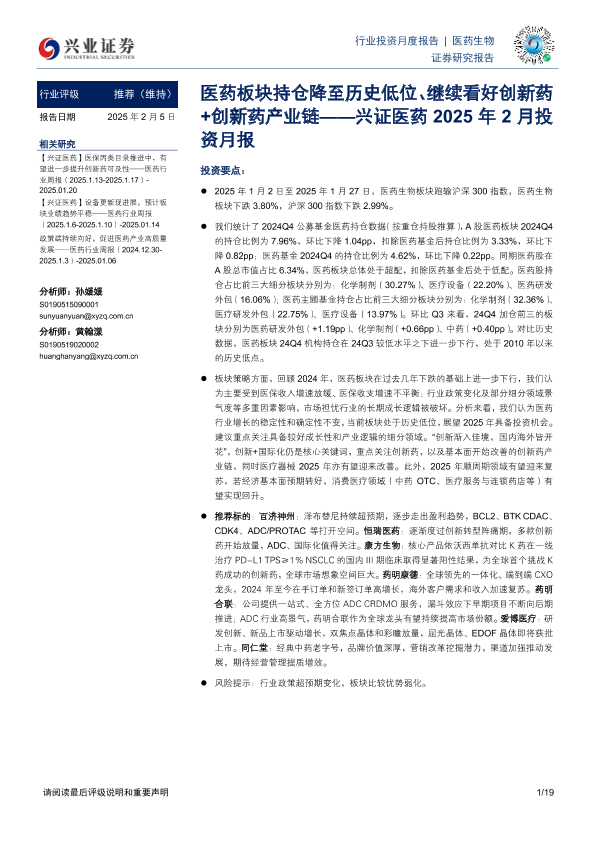 【兴业证券】【20250205】2025年2月投资月报:医药板块持仓降至历史低位、继续看好创新药+创新药产业链-19页