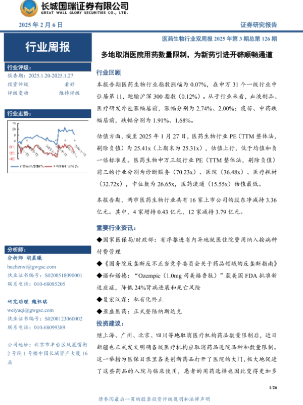 【长城国瑞证券】【20250206】多地取消医院用药数量限制,为新药引进开辟顺畅通道-26页