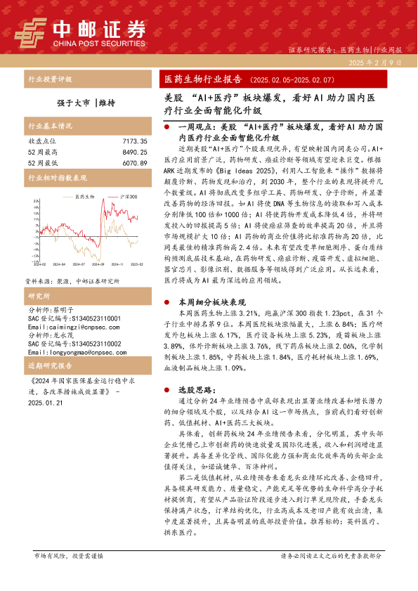 【中邮证券】【20250209】美股“AI+医疗”板块爆发,看好AI助力国内医疗行业全面智能化升级-17页