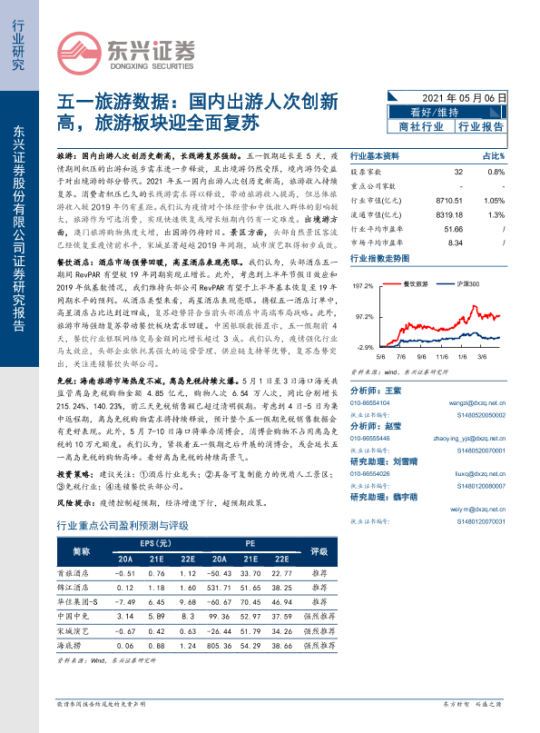 【东兴证券】【20210506】五一旅游数据:国内出游人次创新高,旅游板块迎全面复苏-7页