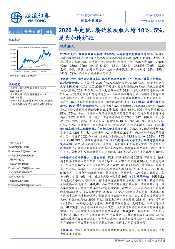 【海通证券】【20210505】2020年免税、餐饮板块收入增10%、5%,龙头加速扩张-20页