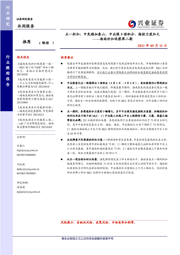 【兴业证券】【20210511】五一折扣:中免稳如泰山、中出服5倍积分、海控力度加大-11页