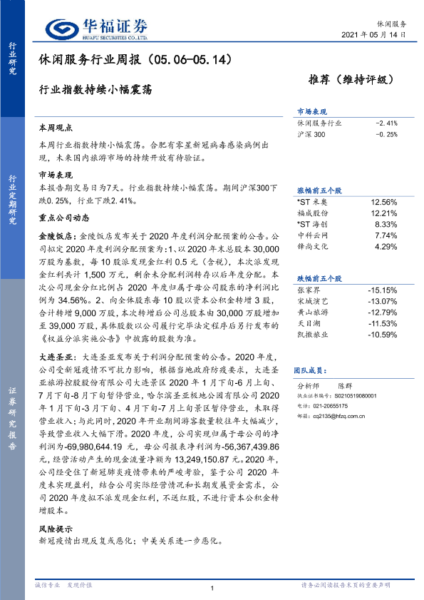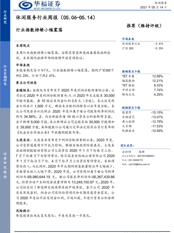 【华福证券】【20210514】休闲服务行业周报:行业指数持续小幅震荡-5页