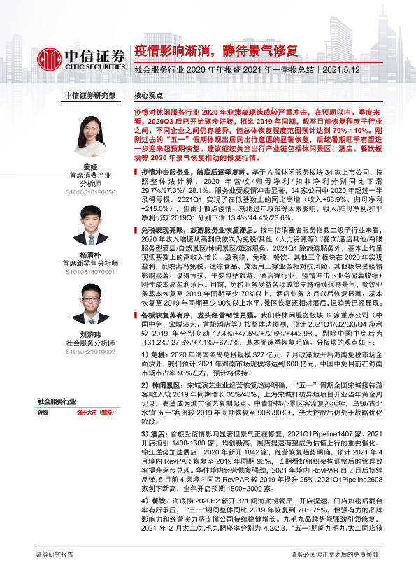 【中信证券】【20210512】社会服务行业2020年年报暨2021年一季报总结-9页