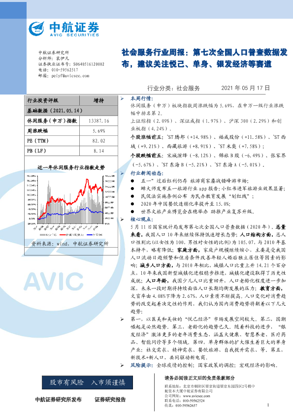 【中航证券】【20210517】社会服务行业周报:第七次全国人口普查数据发布,建议关注悦己、单身、银发经济等赛道-8页