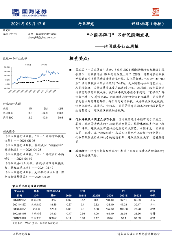 【国海证券】【20210517】休闲服务行业周报:“中国品牌日”不断促国潮发展-9页