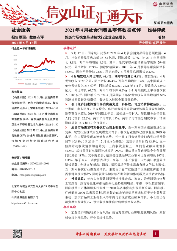 【山西证券】【20210517】2021年4月社会消费品零售数据点评:旅游市场恢复带动餐饮行业营业额增长-3页