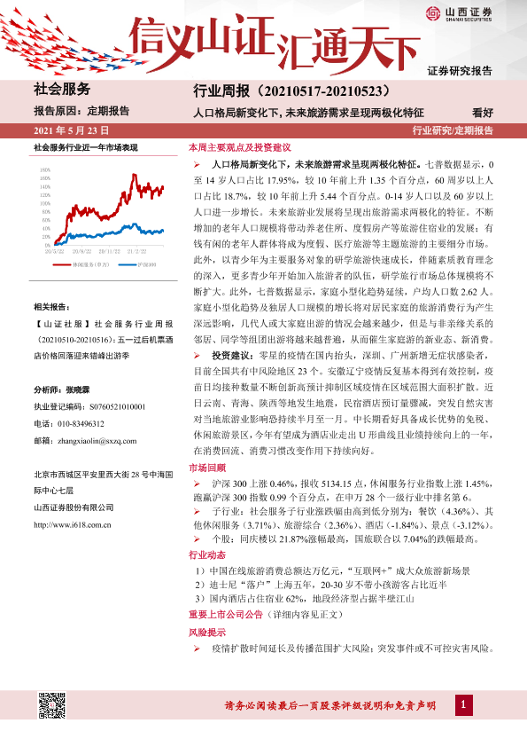 【山西证券】【20210523】社会服务行业周报:人口格局新变化下,未来旅游需求呈现两极化特征-9页