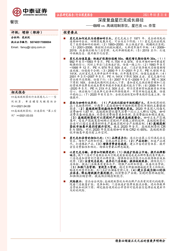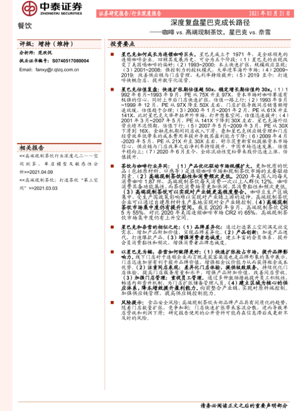 【中泰证券】【20210521】深度复盘星巴克成长路径:咖啡 vs.高端现制茶饮,星巴克 vs.奈雪-32页