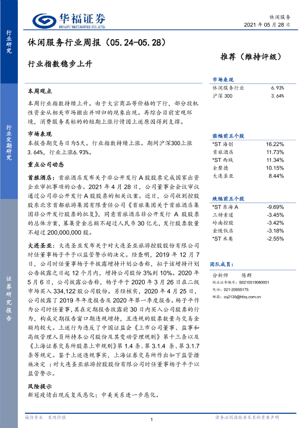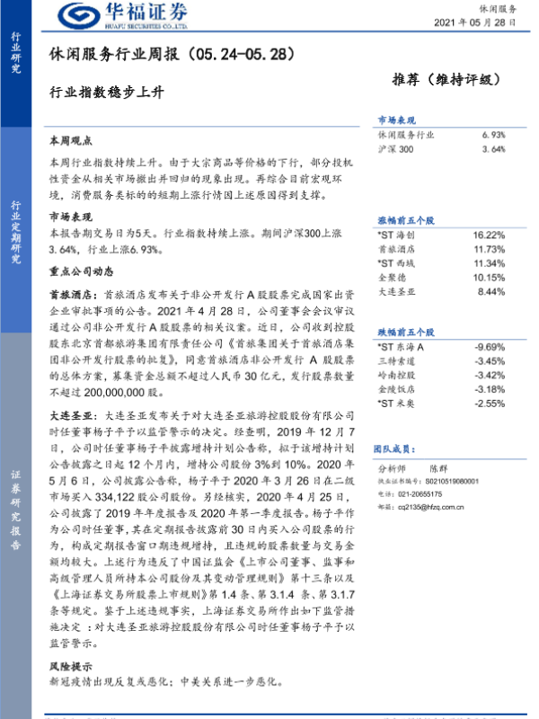 【华福证券】【20210528】休闲服务行业周报:行业指数稳步上升-5页