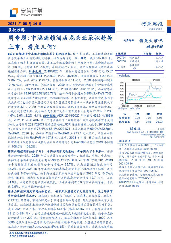 【安信证券】【20210614】餐饮旅游周专题:中端连锁酒店龙头亚朵拟赴美上市,看点几何?-19页
