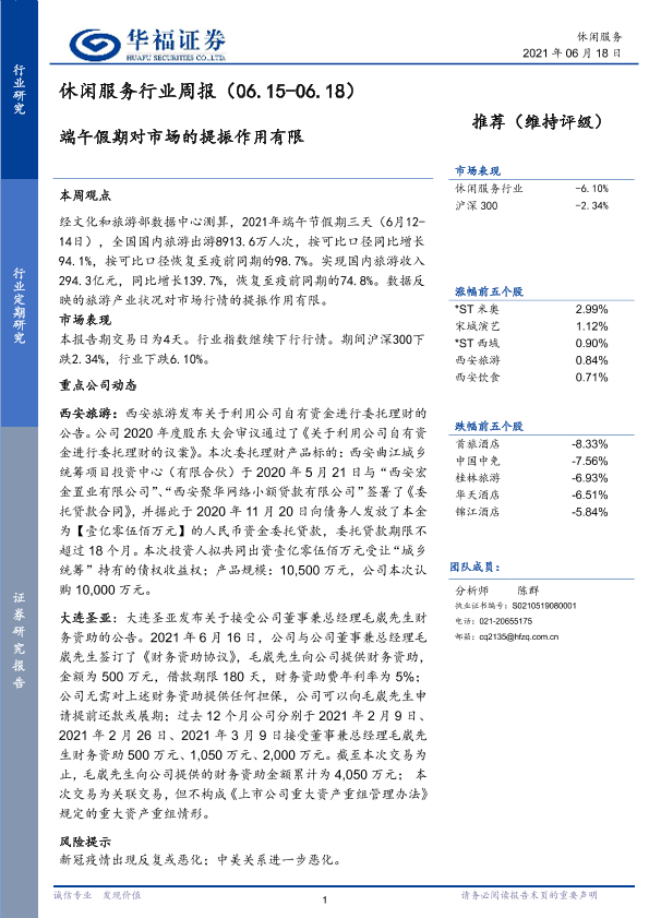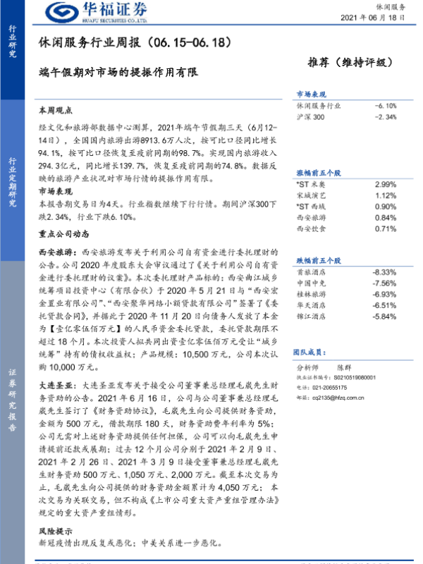 【华福证券】【20210618】休闲服务行业周报:端午假期对市场的提振作用有限-5页
